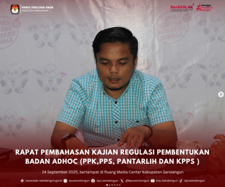Sarolangun, kab-sarolangun.kpu.go.id - Komisi Pemilihan Umum (KPU) Kabupaten Sarolangun melaksanakan Rapat pembahasan kajian regulasi pembentukan badan adhoc (PPK,PPS, pantarlih dan KPPS ). Rabu, (24/9/25)