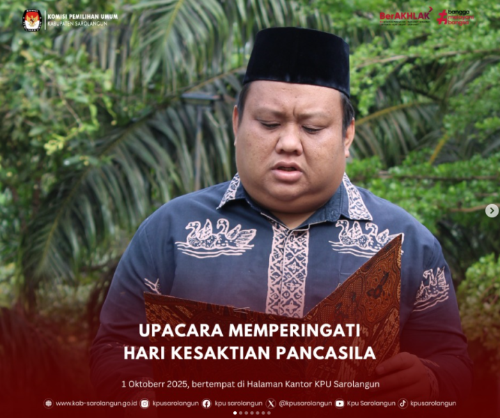 Peringatan hari Kesaktian Pancasila. ini diharapkan dapat menjadi momentum untuk meningkatkan semangat kebangsaan dan memperkuat integritas seluruh staf KPU Sarolangun dalam menjalankan tugas-tugas.
