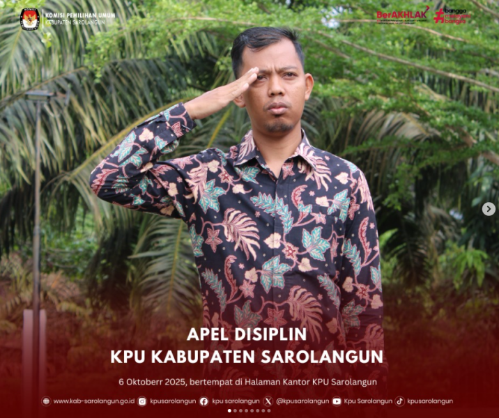Sarolangun, kab-sarolangun.kpu.go.id - Komisi Pemilihan Umum (KPU) Kabupaten Sarolangun melaksanakan Apel Disiplin di Halaman Kantor KPU Kabupaten Sarolangun. Senin, 6 Oktober 2025,