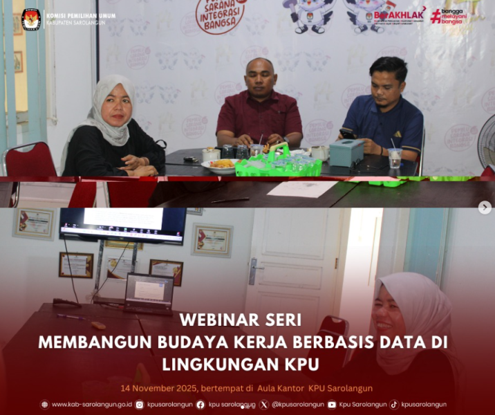 Sarolangun, kab-sarolangun.kpu.go.id - Komisi Pemilihan Umum Kabupaten Sarolangun mengikuti Webinar Seri Membangun Budaya Kerja Berbasis Data di Lingkungan KPU pada Jumat, 14 November 2025 pada Jum'at, 14 November 2025, melalui Zoom Meeting.