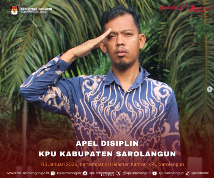 Sarolangun, kab-sarolangun.kpu.go.id - Komisi Pemilihan Umum Kabupaten Sarolangun melaksanakan Apel disiplin pada hari Senin, 05 Januari 2026 di Halaman Kantor KPU Kabupaten Sarolangun.